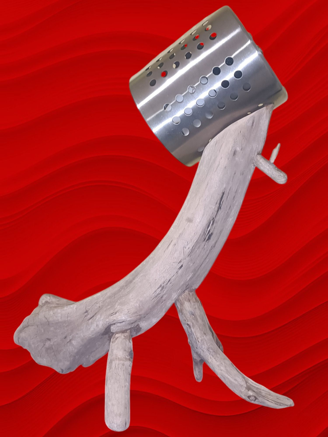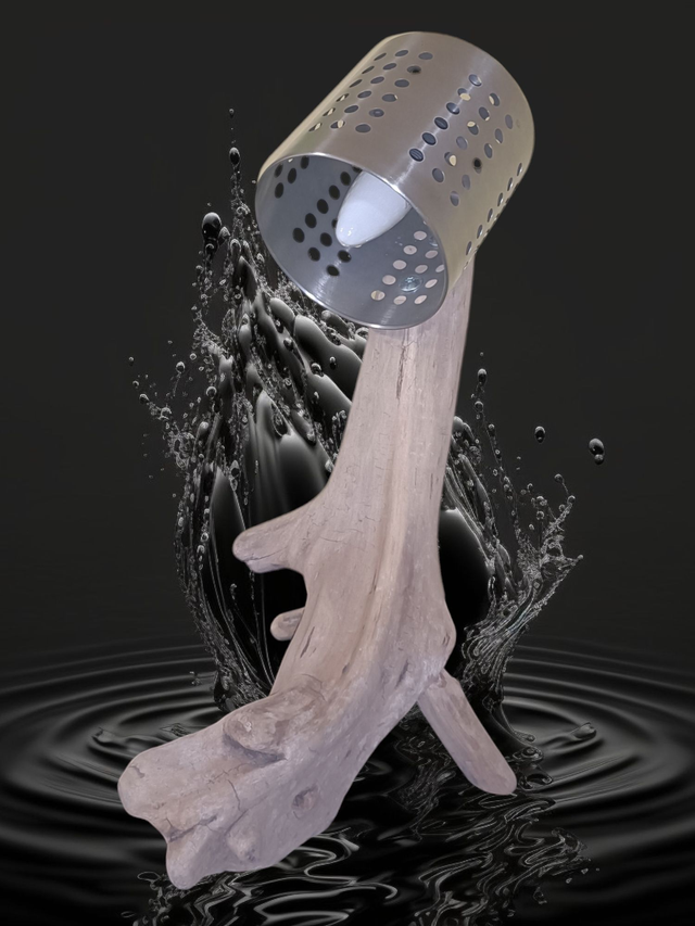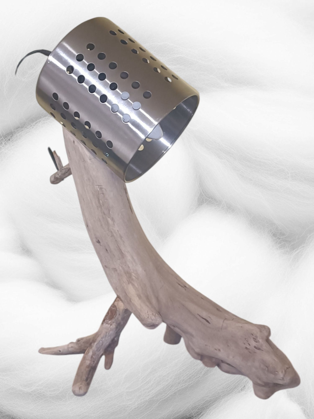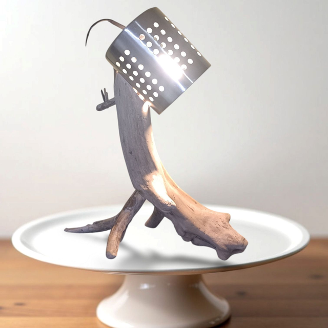 Lampe avec un égouttoir en inox pour abat-jour d'un diamètre de 12cm pour une longueur de 13.5cm, longueur du fil 1.55cm, Hauteur de la lampe 41cm socle 33cm par 20cm.